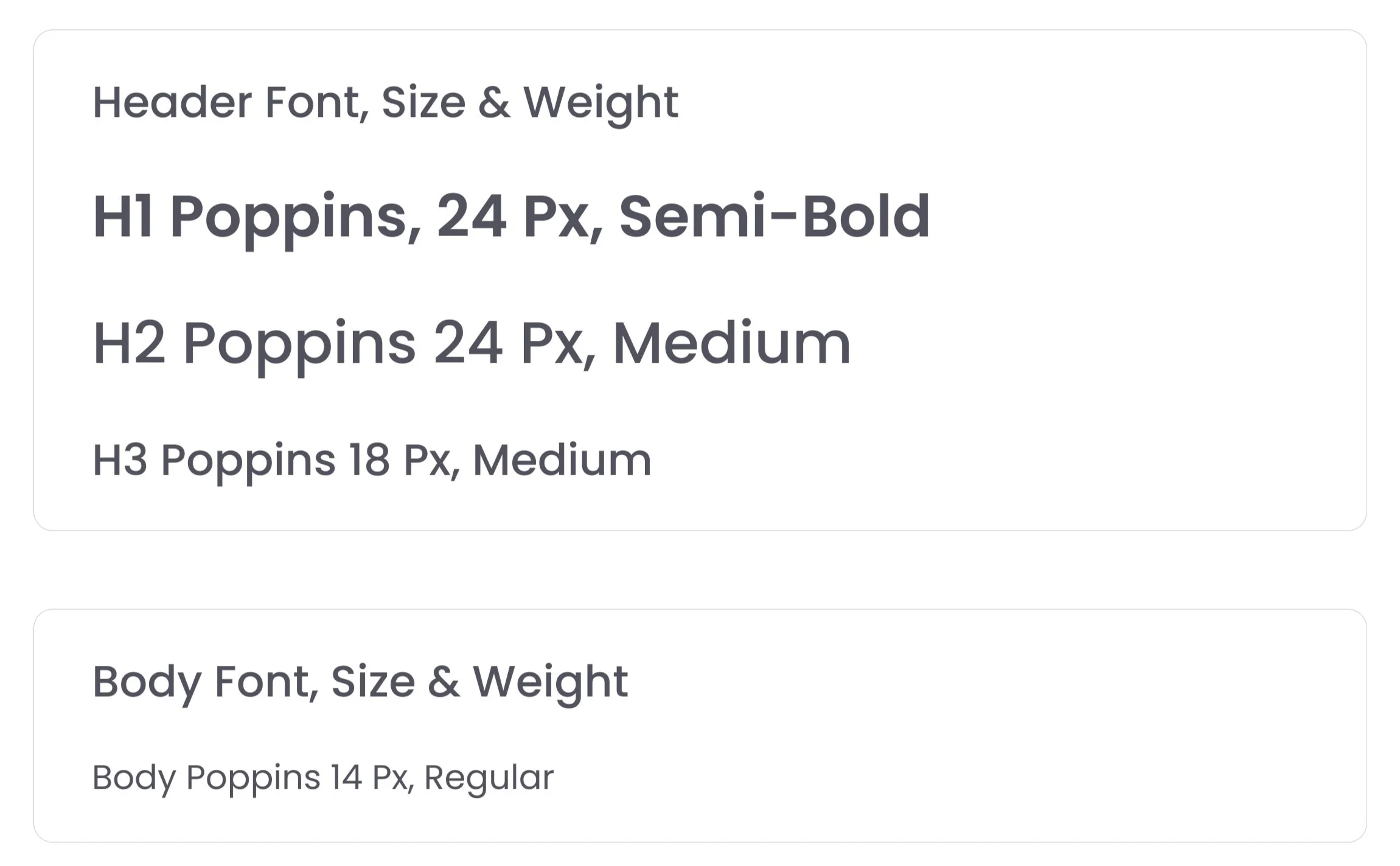 Sans Serif typeface is clean and easy to read and provides a positive impact on accessibility. Poppins, used at a minimum 14 points, optimizes legibility while promoting a clean and modern feel.