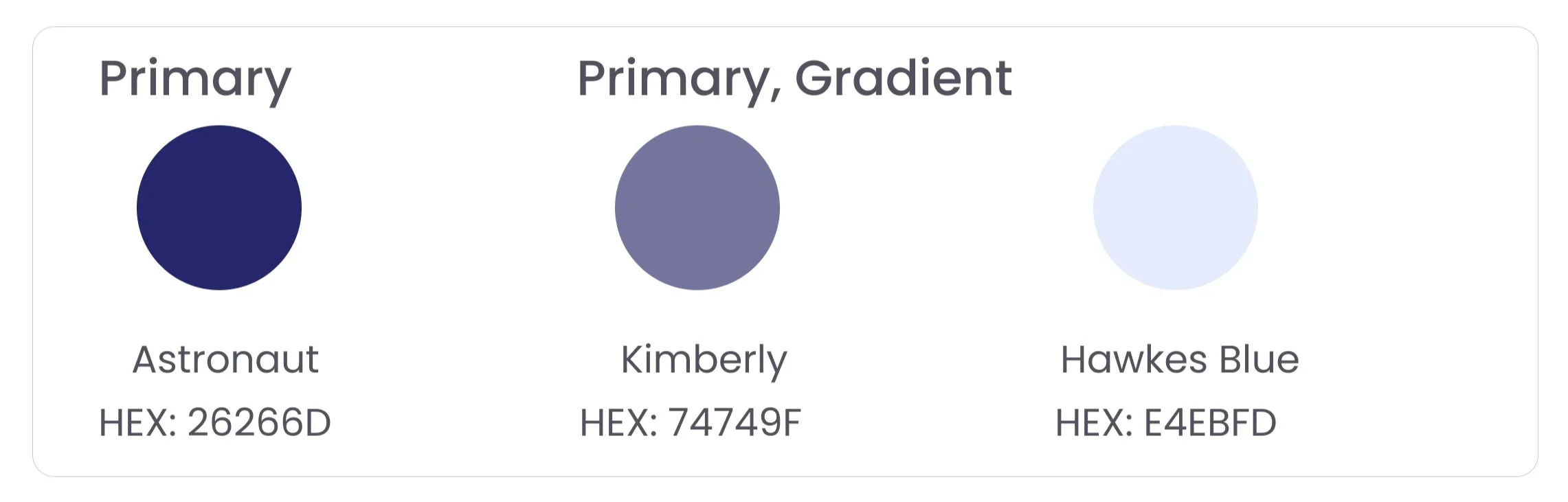 The color selection within the color palette supports the brand identity and tenants of sophistication and comfort. A dark navy blue hue as the primary color supports the brand identity of luxury and richness. Lighter hues and beiges evoke comfort and relaxation and served as the secondary color and gradients.